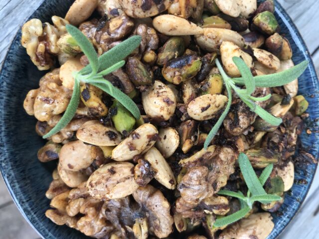 Disse snack nødder er skønne at have med på arbejde eller på ferie, så du ikke mangler noget til dit blodsukker og din energi. Husk at bruge smuttede mandler, hvis du er meget lektin følsom. Der er lidt lektin i skallen på mandler.